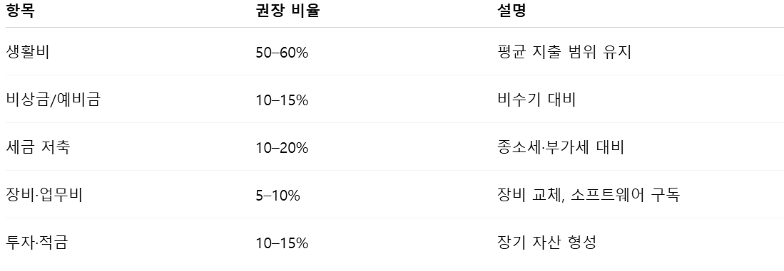 수입이 고정되어 있지 않은 프리랜서에게는 비율 배분 방식이 매우 유용하다.